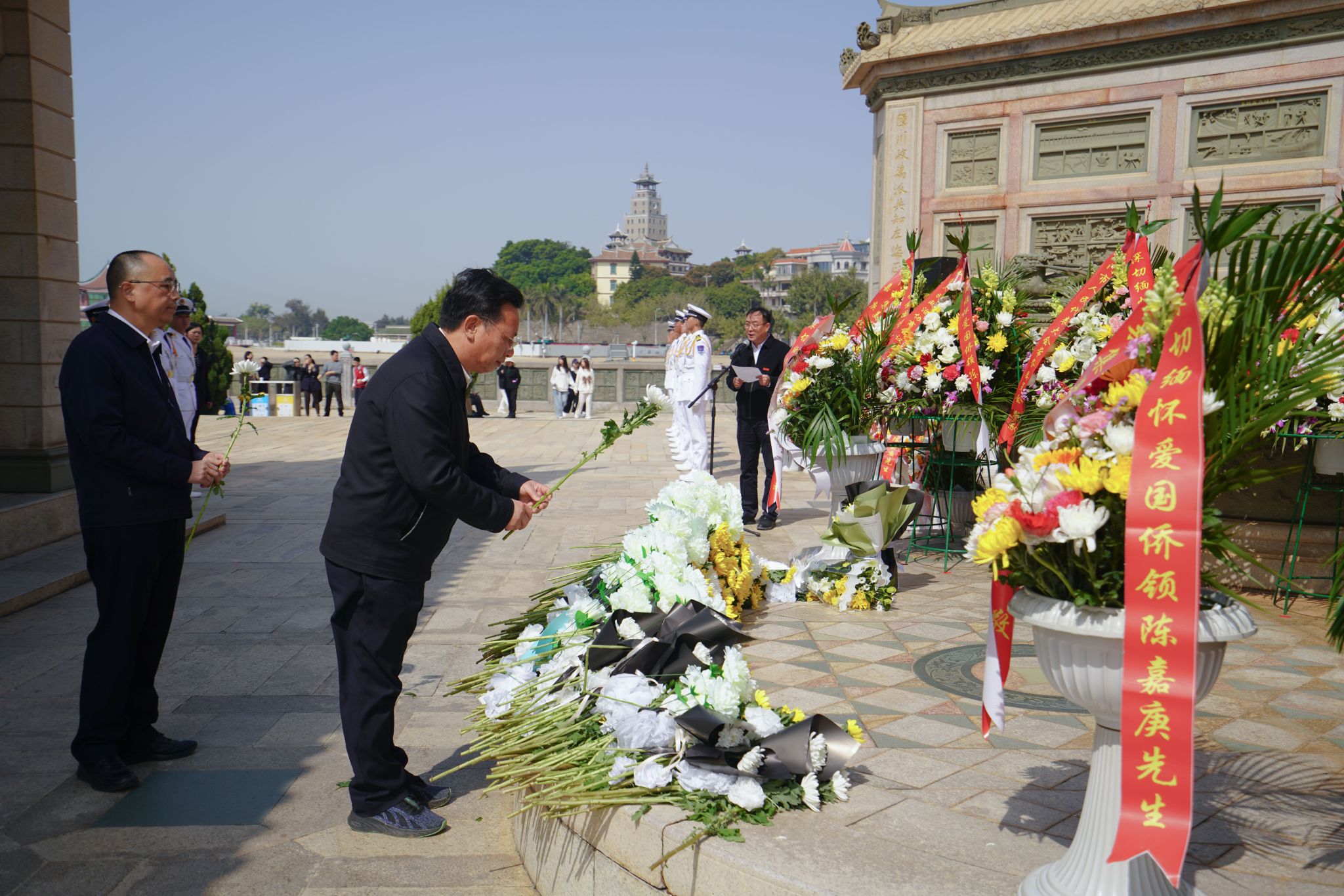 校领导与师生代表先后前往鳌园、敬贤公园祭扫陈嘉庚先生陵墓及其胞弟陈敬贤先生墓塔,共同追思他们倾资兴学的赤子情怀,感悟“华侨旗帜、民族光辉”的精神伟力。校党委书记沈灿煌、校长谢潮添敬献花篮并整理缎带,全体人员默哀行礼,并依次敬献鲜花,表达追思之情。